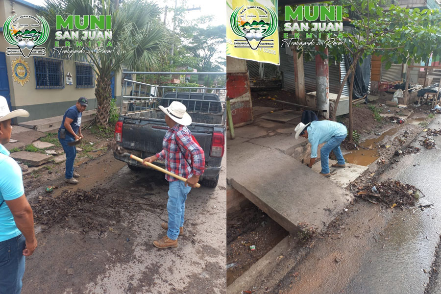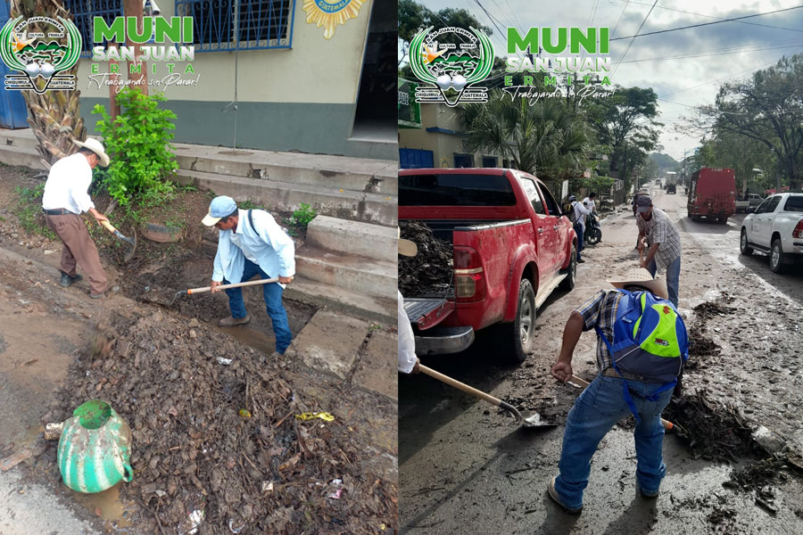 Desde tempranas horas personal de Servicios Públicos Municipales se encuentra limpiando calles y cunetas debido a los residuos y basura que acarrean las aguas por lluvia. Municipalidad trabaja bajo el enfoque de Municipio Limpio.
