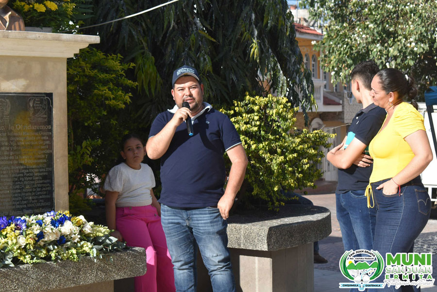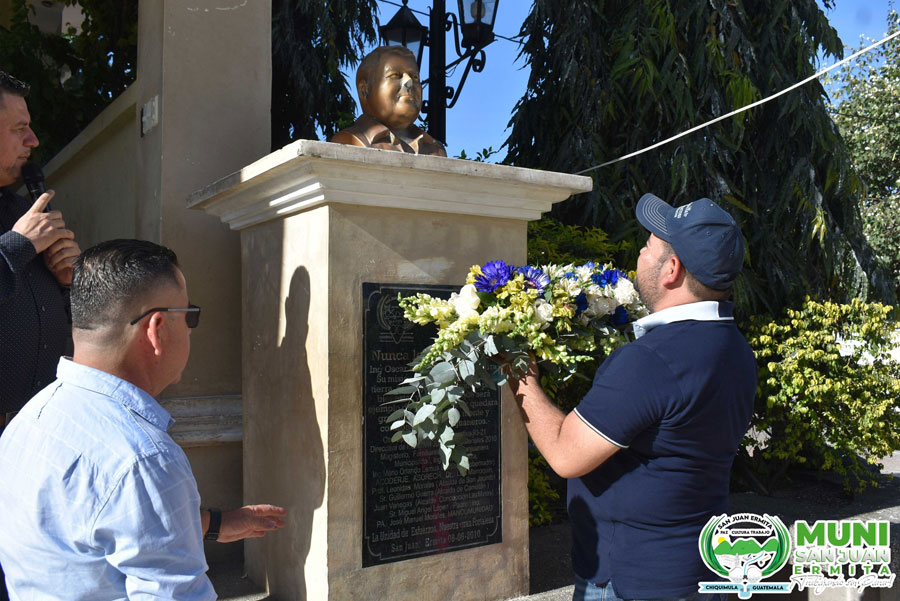 Municipalidad de San Juan Ermita llevó a cabo el homenaje a un gran personaje que el pueblo recuerda con mucho cariño y respeto como lo fuera el Ing. Oscar Rolando Martínez quien el día de ayer cumplió 15 años de su muerte, sin embargo Autoridades Municipales junto con los empleados acompañaron al acto de conmemoración a través de colocar una ofrenda floral al busto que se encuentra en el parque central y así mismo hacer entrega de un arreglo florar a la familia quienes expresaron el sentirse agradecidos por tan bonito gesto y homenaje que se realiza año con año.